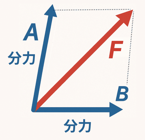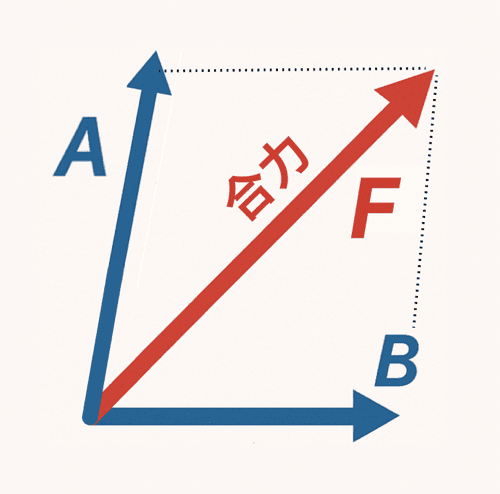たとえば、2つの力 \(A\) と \(B\) があったとき、これを合成することで新しい力 \(F\) にできる。