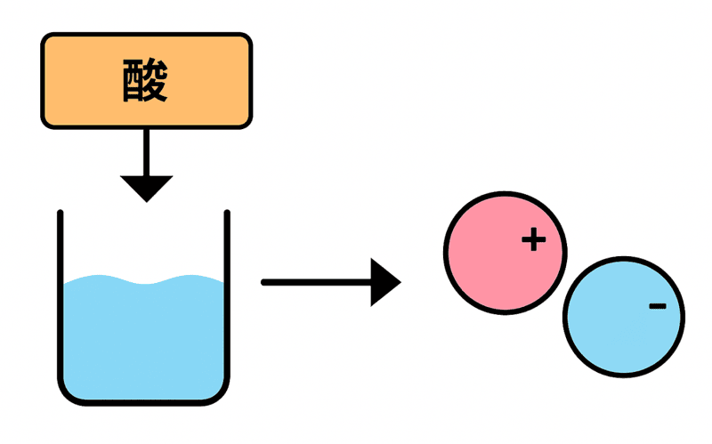 それはね……酸は水に溶けるとイオンに分かれるからさ。