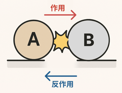 力が加わると、その反対方向にも同じ大きさの力が生まれる法則のこと