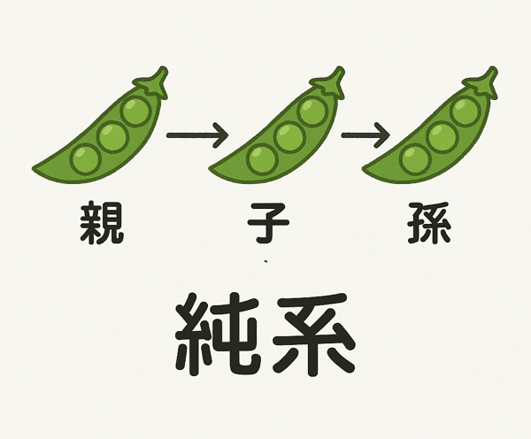 - 純系は、親から孫まで形質が変わらないこと
