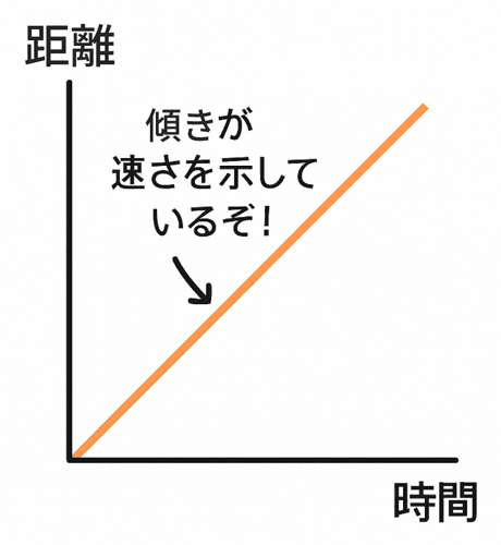 この傾きから速さが読み取れるから、グラフを使うとさらに理解が深まるはずさ!